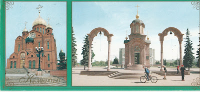 This card has travelled many miles; it comes from Kemerovo in Siberia and was sent to me by Nina. It isn't quite clear to me what kind of buildings I see on these pictures, but it sure is a beautiful card!